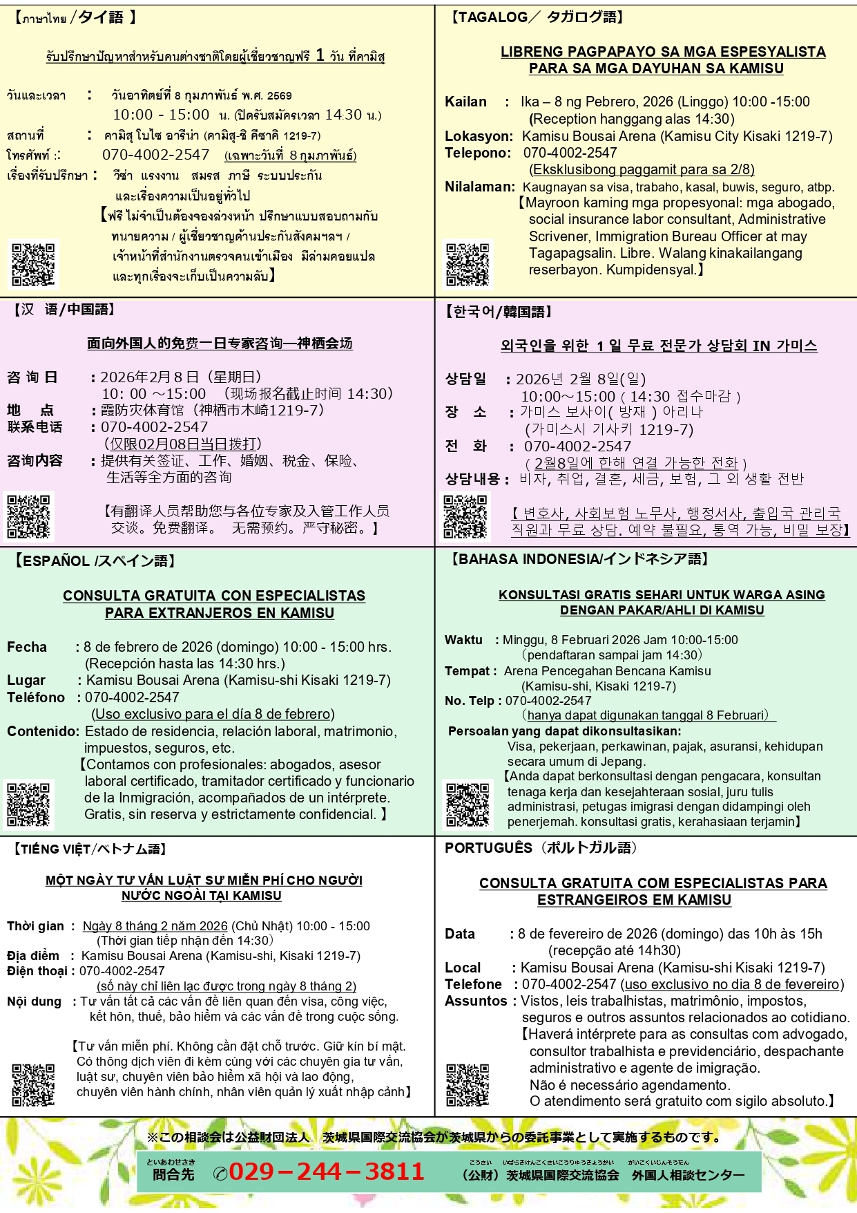 外国人のための一日無料専門家相談会 開催のお知らせ